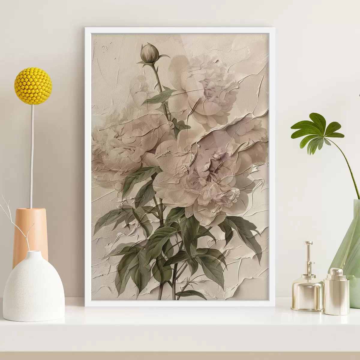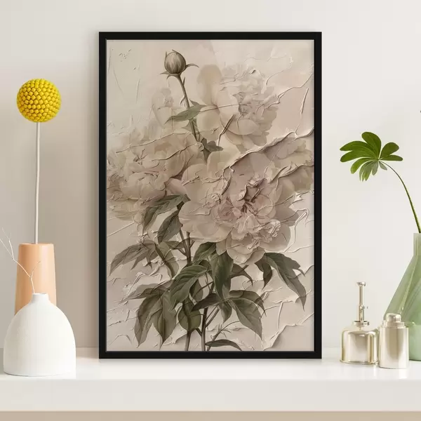 Poster Üppiger Blumenstrauß aus Pfingstrosen auf hellem Hintergrund Nr f45337