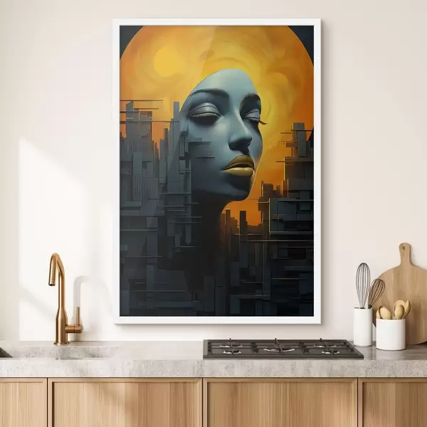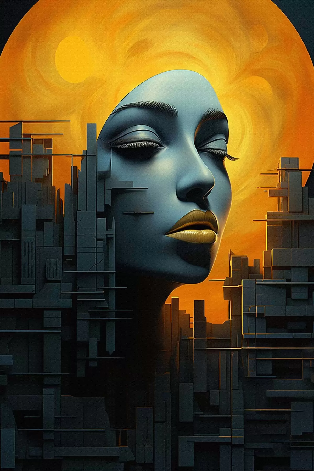 Poster Menschen, Mädchen Gesicht Stadt auf einem abstrakten Hintergrund Nr f45342