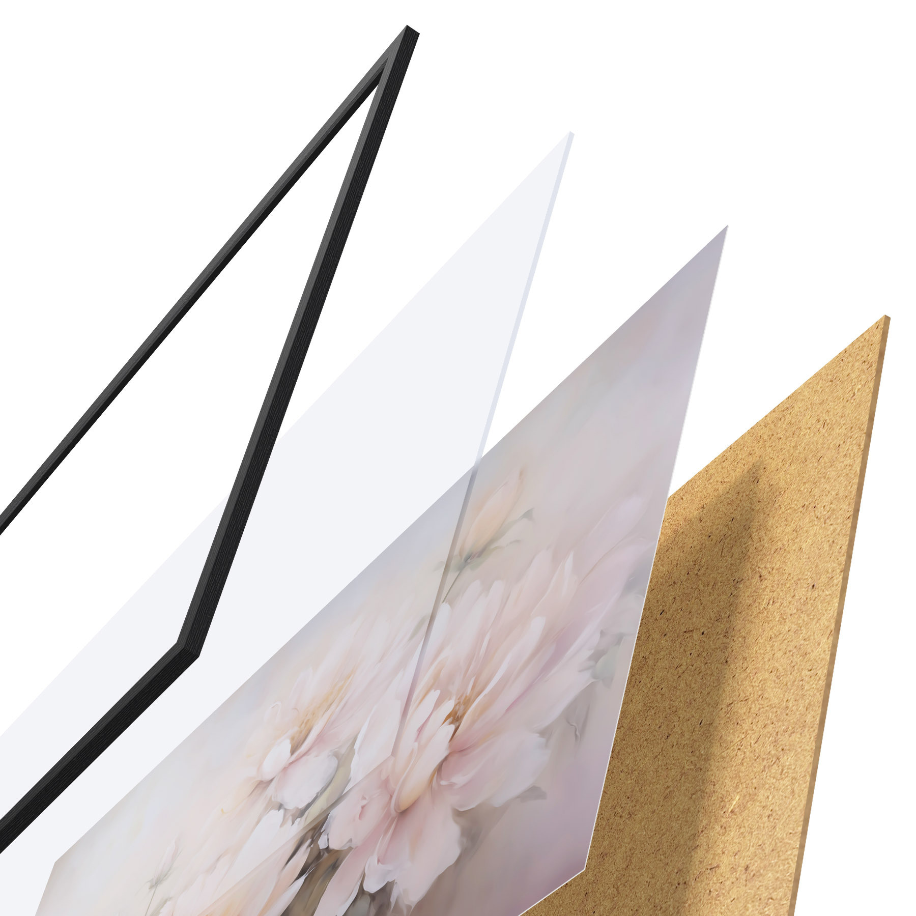 Das Poster besteht aus einem Rahmen, Plexiglas, einem gedruckten Bild und einer Rückwand aus Spanplatten. Dank der Halterungen auf der Rückseite kann das Poster sofort an die Wand gehängt werden.