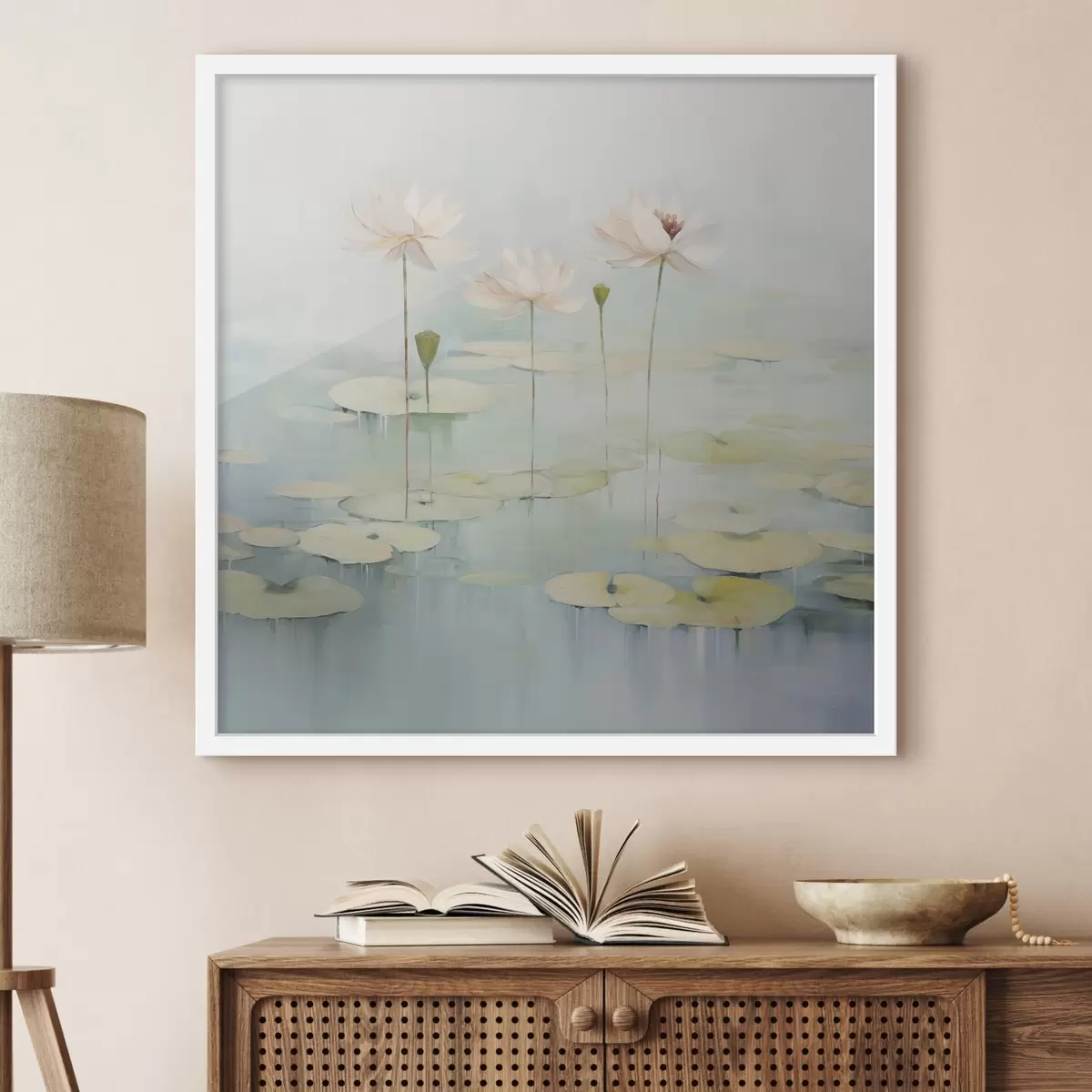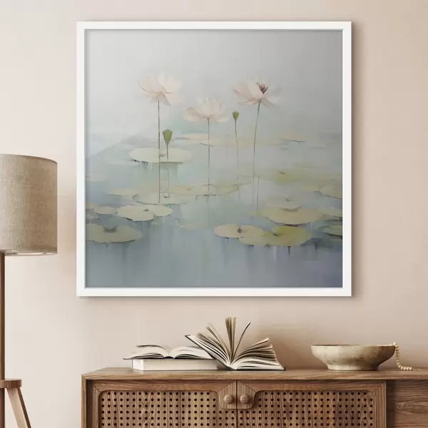 Poster Lotusblätter und Blumen auf dem Teich Nr f45350