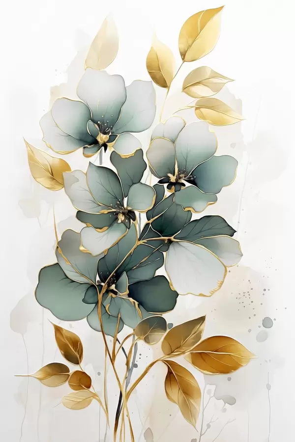 Poster Abstrakter Zweig mit Blumen und Blättern Nr f45367