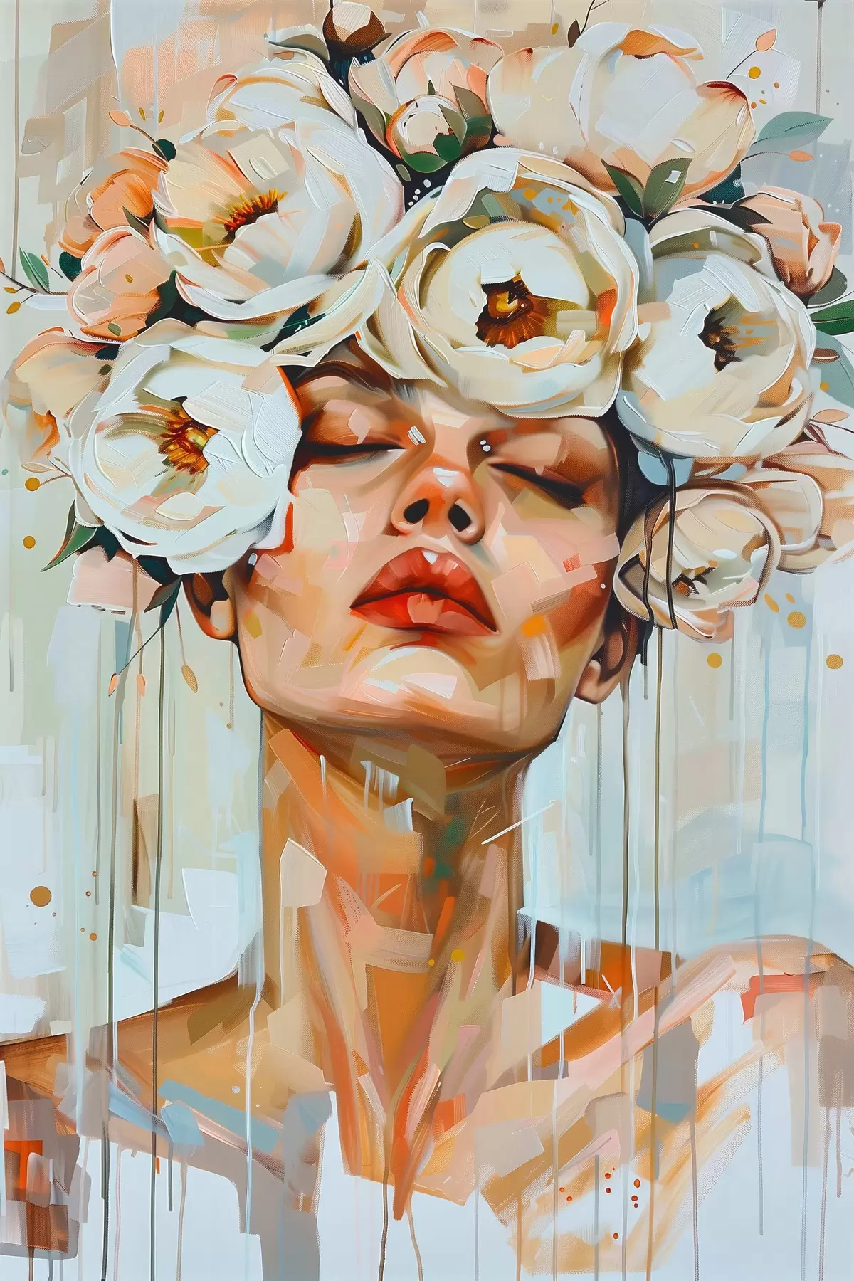 Poster Porträt einer Frau mit Blumen Nr f45370