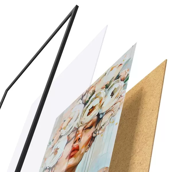 Das Poster besteht aus einem Rahmen, Plexiglas, einem gedruckten Bild und einer Rückwand aus Spanplatten. Dank der Halterungen auf der Rückseite kann das Poster sofort an die Wand gehängt werden.