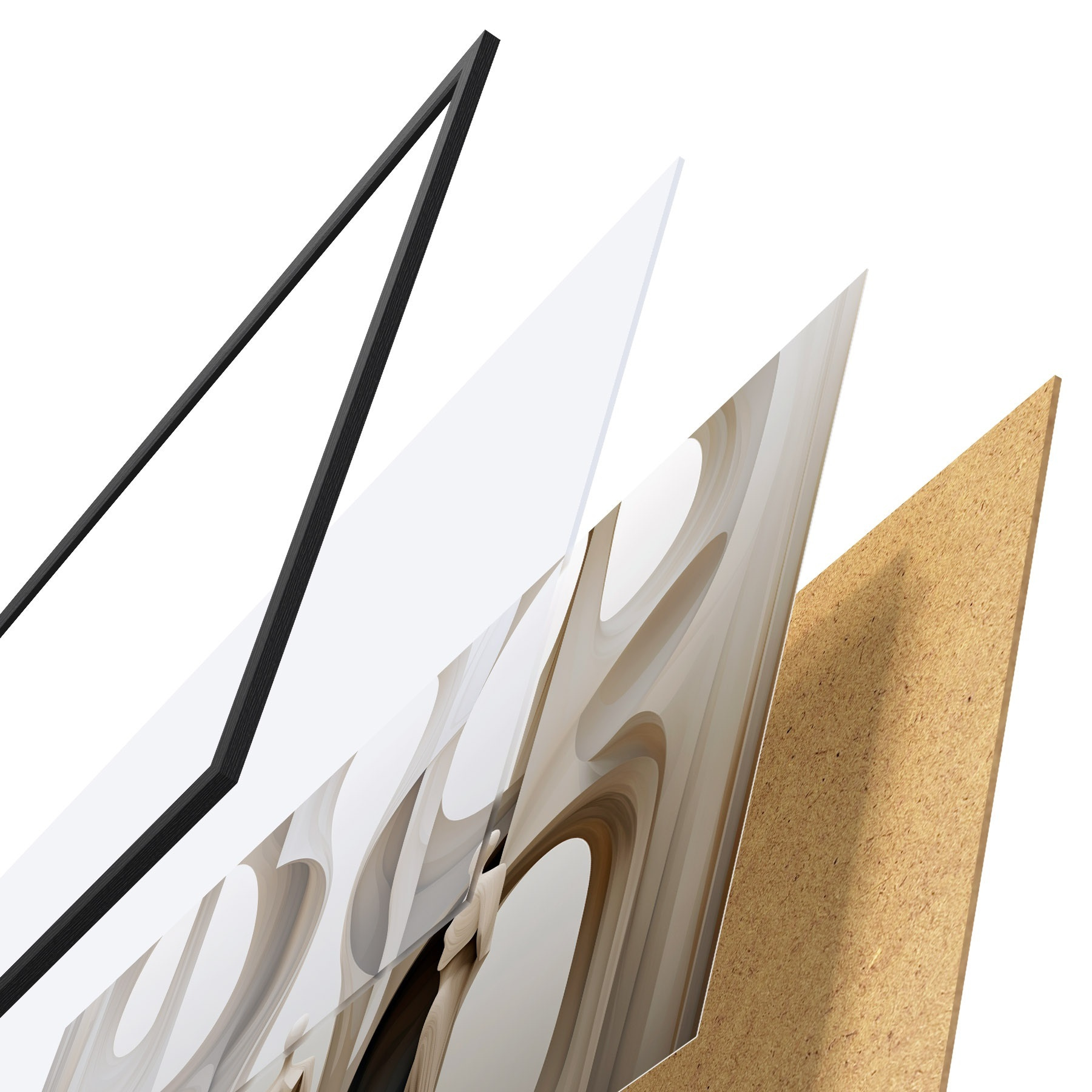 Das Poster besteht aus einem Rahmen, Plexiglas, einem gedruckten Bild und einer Rückwand aus Spanplatten. Dank der Halterungen auf der Rückseite kann das Poster sofort an die Wand gehängt werden.