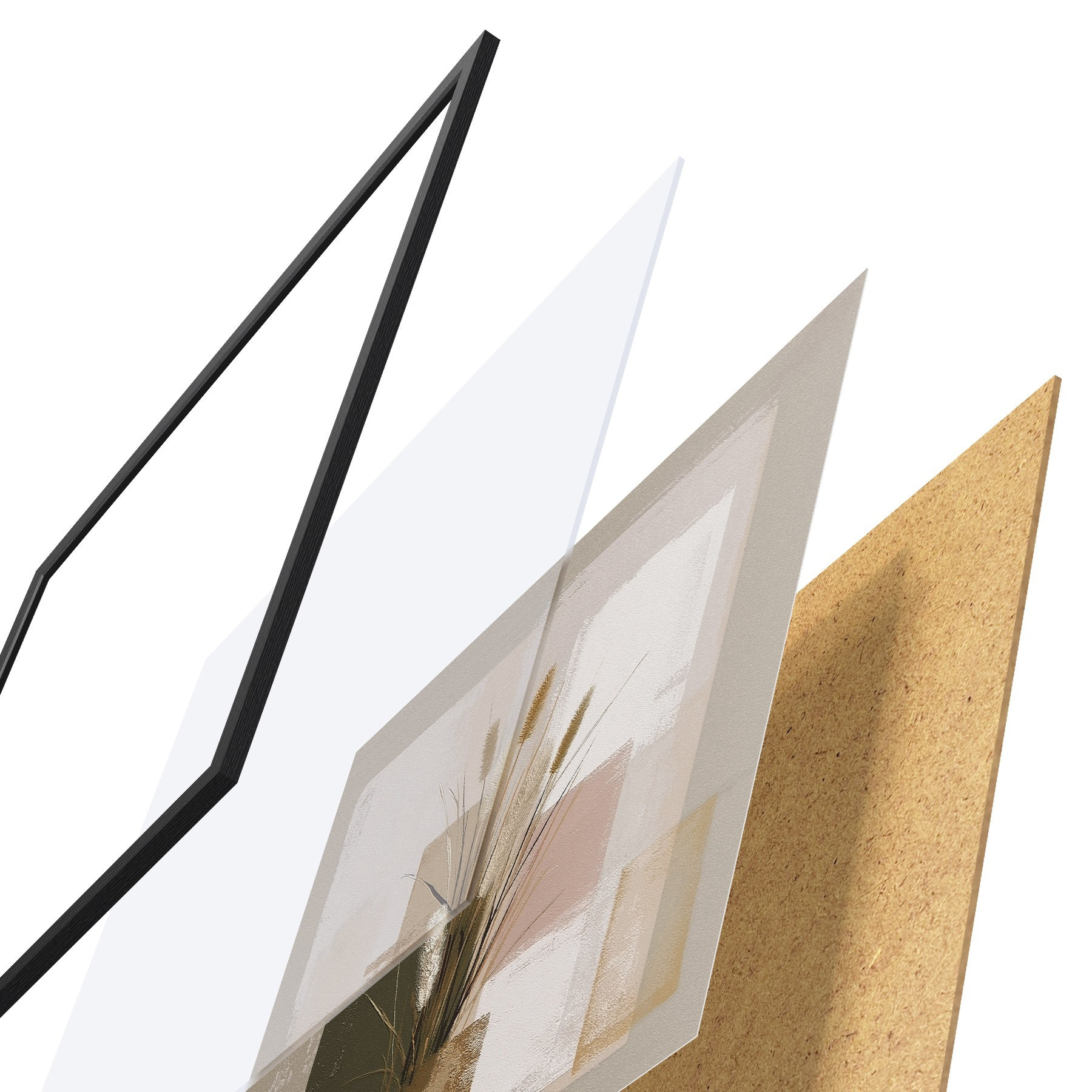 Das Poster besteht aus einem Rahmen, Plexiglas, einem gedruckten Bild und einer Rückwand aus Spanplatten. Dank der Halterungen auf der Rückseite kann das Poster sofort an die Wand gehängt werden.