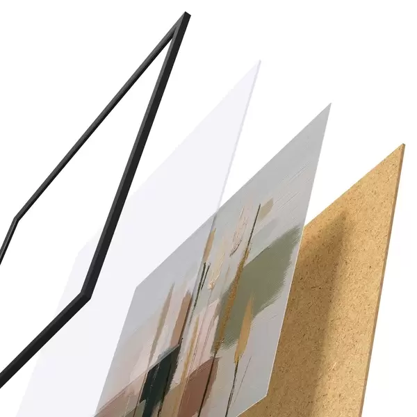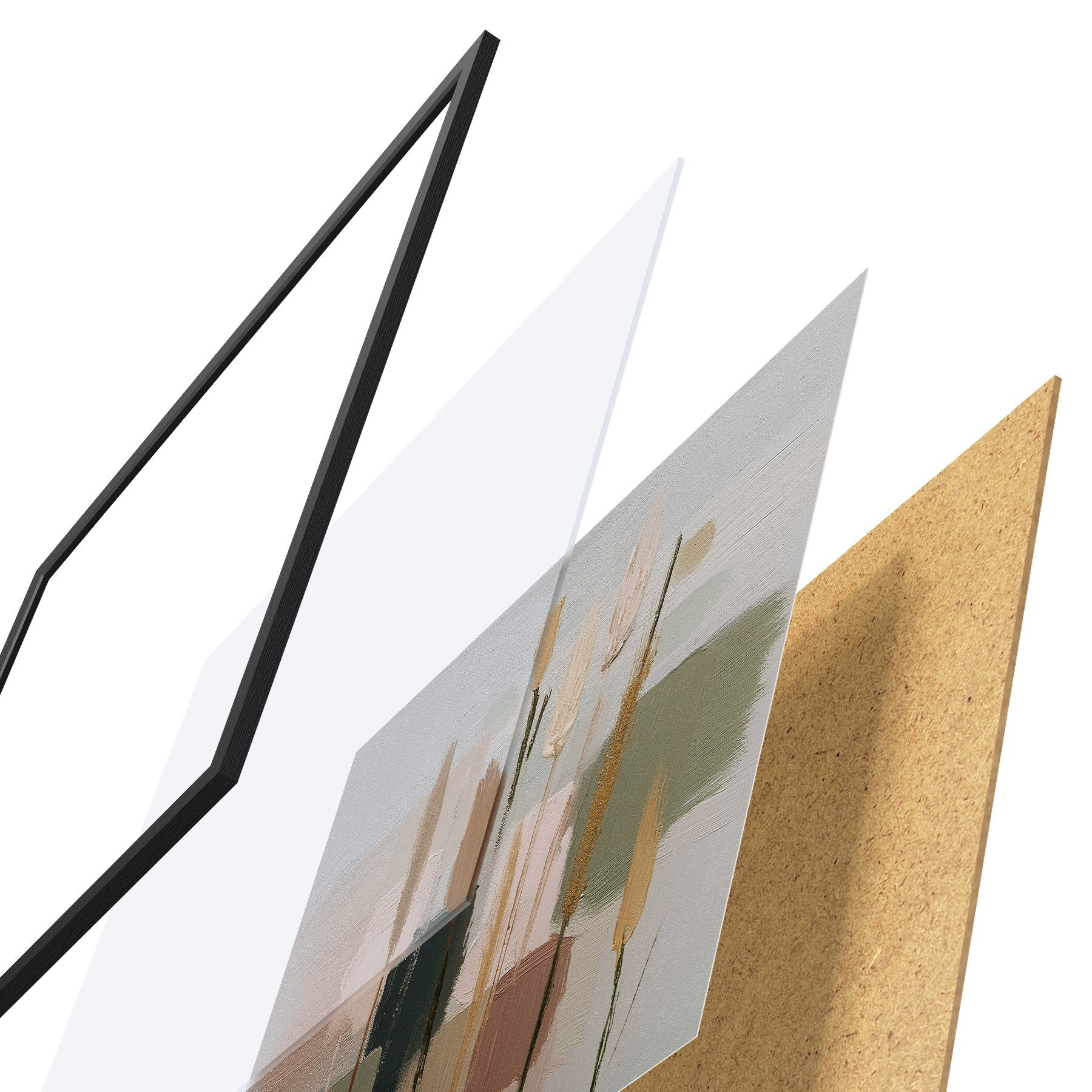 Das Poster besteht aus einem Rahmen, Plexiglas, einem gedruckten Bild und einer Rückwand aus Spanplatten. Dank der Halterungen auf der Rückseite kann das Poster sofort an die Wand gehängt werden.