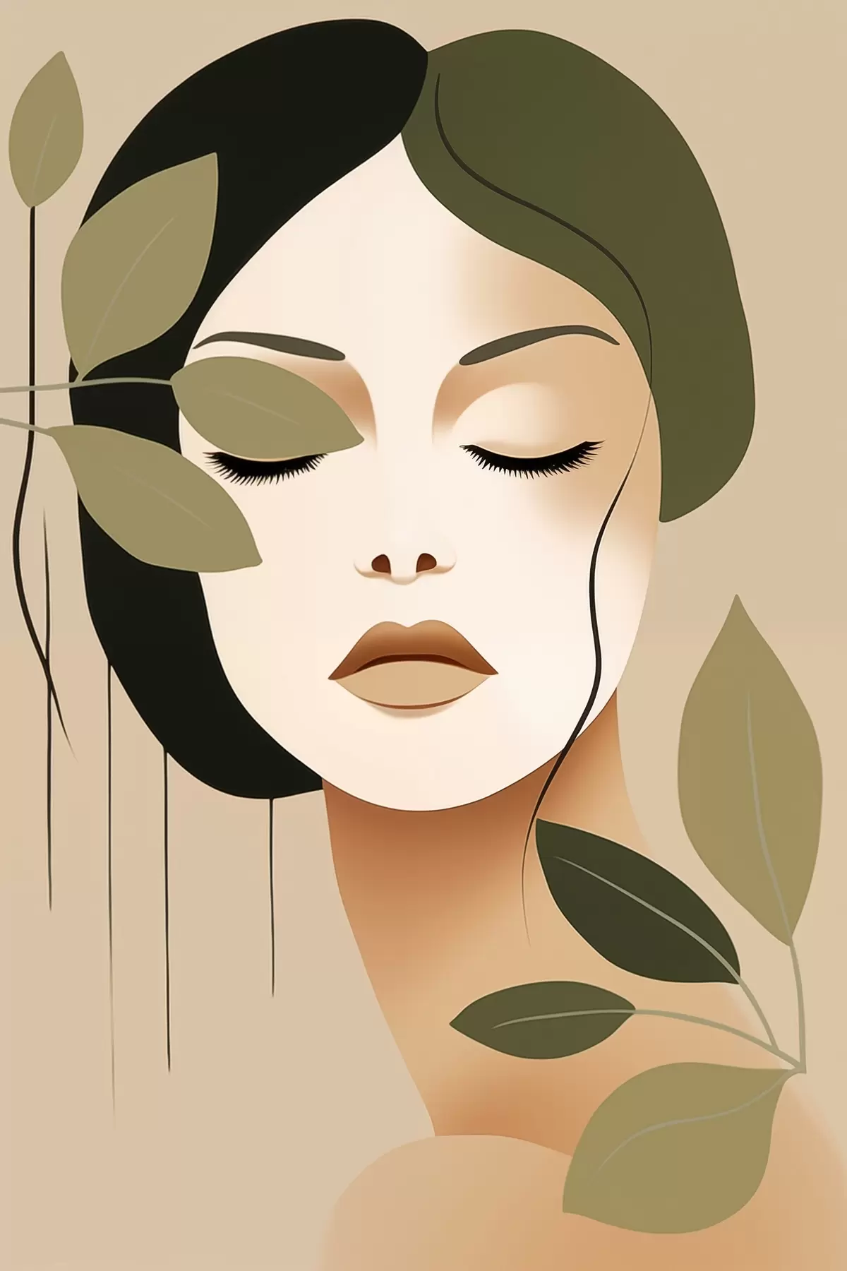 Poster Mädchen mit Blättern Nr f45390