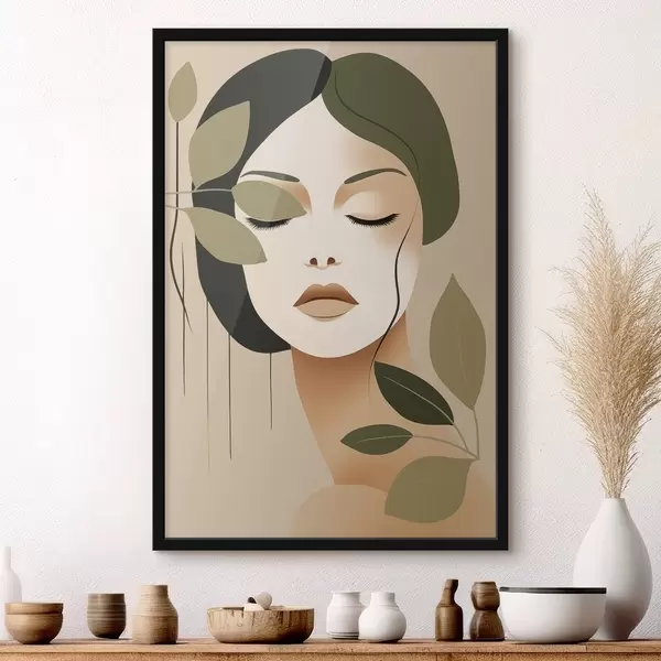 Poster Mädchen mit Blättern f45390
