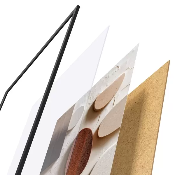 Das Poster besteht aus einem Rahmen, Plexiglas, einem gedruckten Bild und einer Rückwand aus Spanplatten. Dank der Halterungen auf der Rückseite kann das Poster sofort an die Wand gehängt werden.