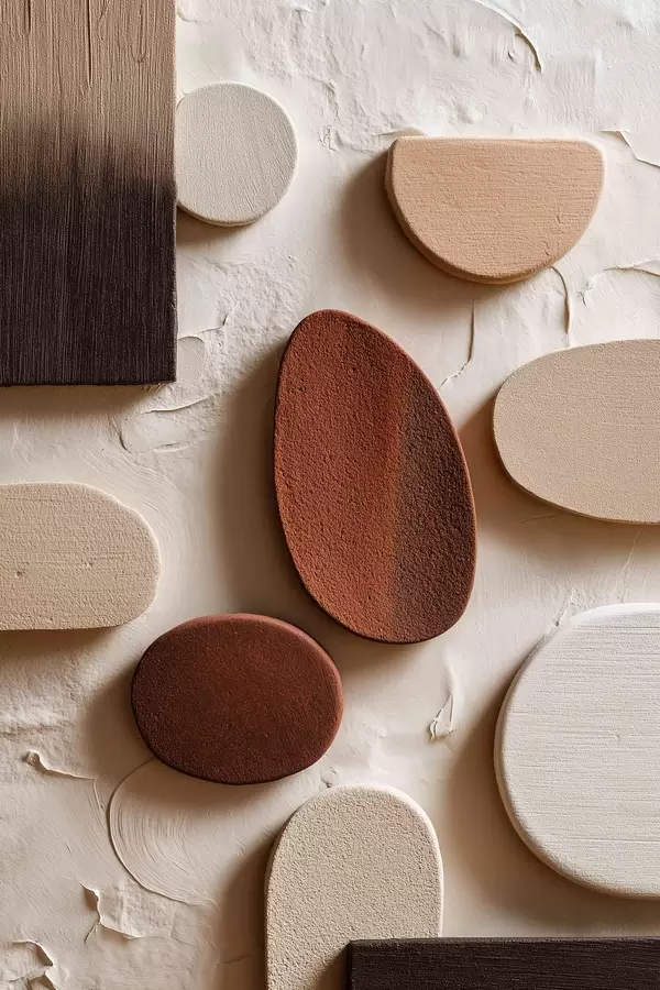 Poster Abstrakte Komposition mit dreidimensionalen geometrischen Formen auf einem Reliefhintergrund Nr f45409