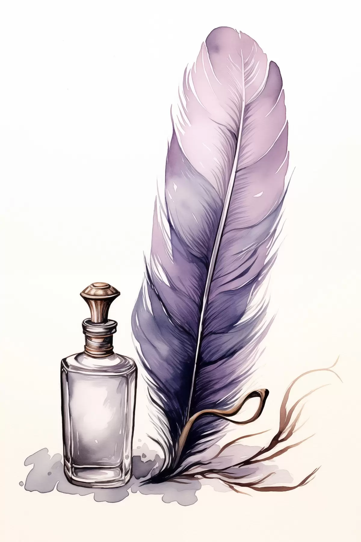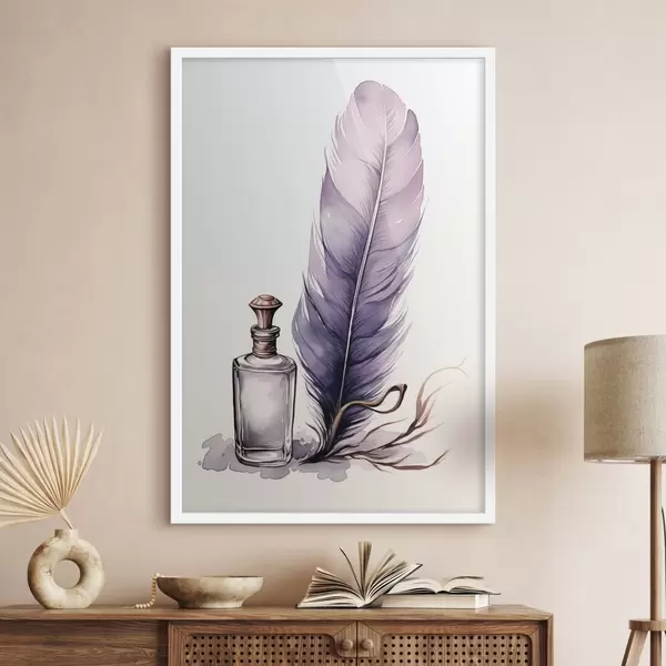 Poster Aquarell-Illustration einer Feder und eines Tintenfasses aus Glas Nr f45410