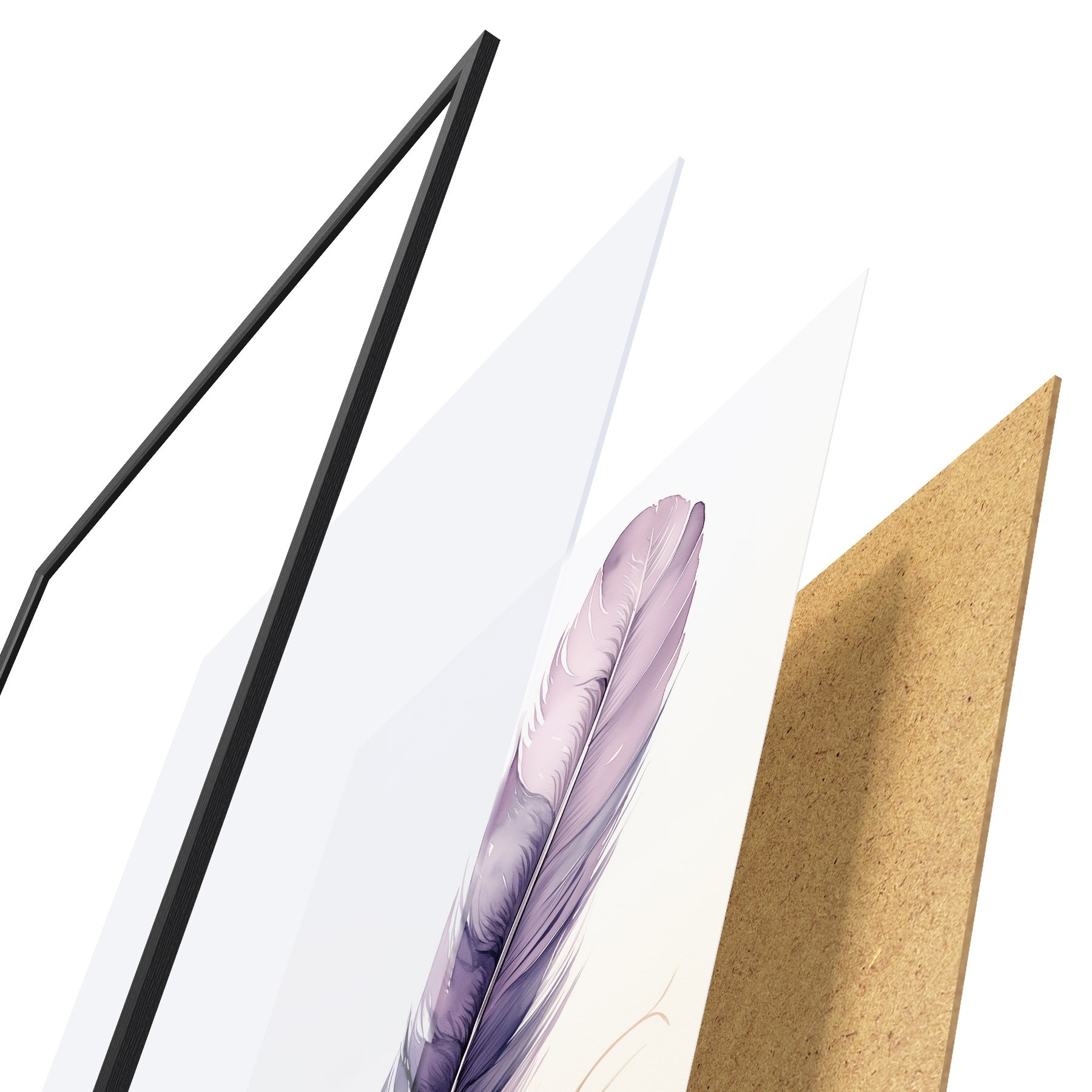 Das Poster besteht aus einem Rahmen, Plexiglas, einem gedruckten Bild und einer Rückwand aus Spanplatten. Dank der Halterungen auf der Rückseite kann das Poster sofort an die Wand gehängt werden.