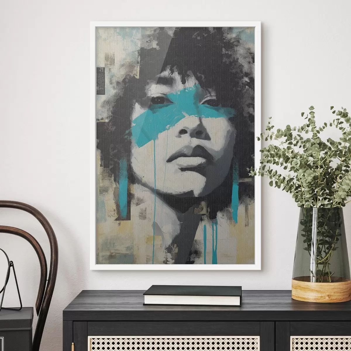 Poster Mixed Media Portrait mit Fragmenten von Farbstrichen und Texturen f45417