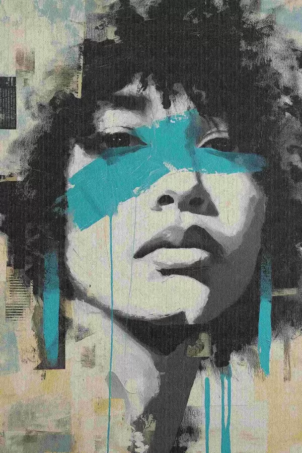 Poster Mixed Media Portrait mit Fragmenten von Farbstrichen und Texturen f45417