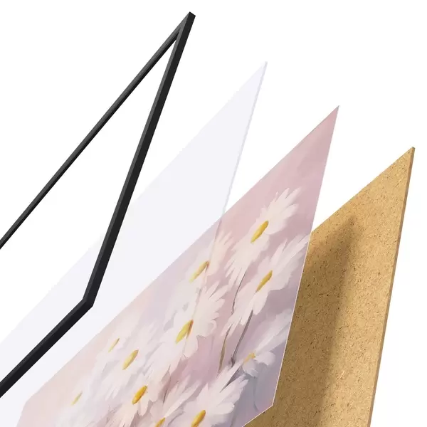 Das Poster besteht aus einem Rahmen, Plexiglas, einem gedruckten Bild und einer Rückwand aus Spanplatten. Dank der Halterungen auf der Rückseite kann das Poster sofort an die Wand gehängt werden.