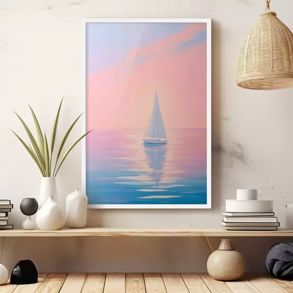 Poster Segelboot auf See bei Sonnenuntergang f45428