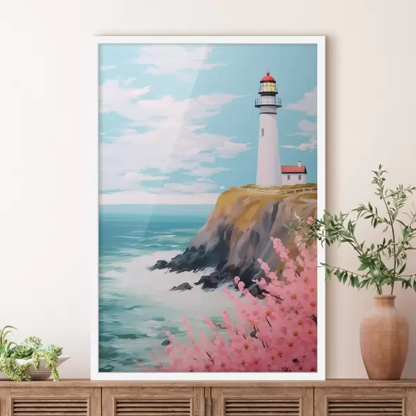 Poster Leuchtturm auf einer Klippe am Meer Nr f45435