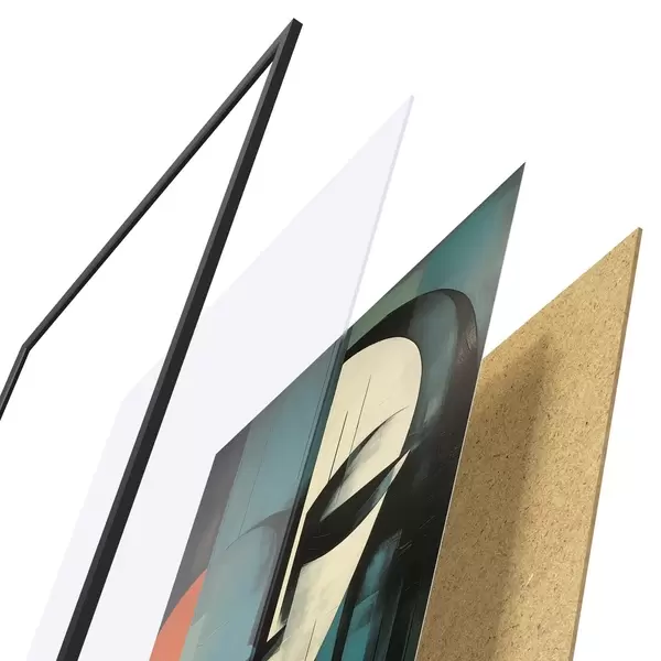 Das Poster besteht aus einem Rahmen, Plexiglas, einem gedruckten Bild und einer Rückwand aus Spanplatten. Dank der Halterungen auf der Rückseite kann das Poster sofort an die Wand gehängt werden.