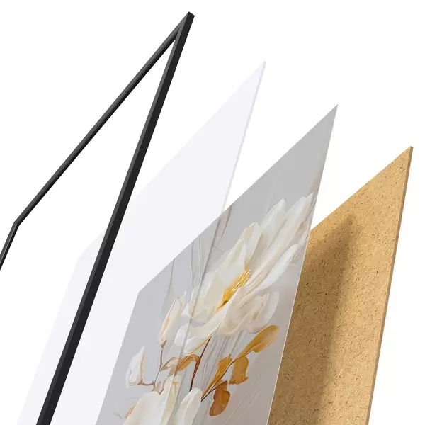 Das Poster besteht aus einem Rahmen, Plexiglas, einem gedruckten Bild und einer Rückwand aus Spanplatten. Dank der Halterungen auf der Rückseite kann das Poster sofort an die Wand gehängt werden.