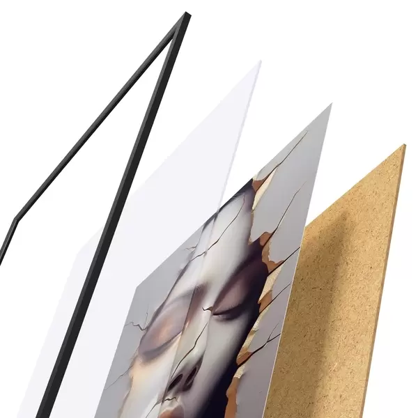 Das Poster besteht aus einem Rahmen, Plexiglas, einem gedruckten Bild und einer Rückwand aus Spanplatten. Dank der Halterungen auf der Rückseite kann das Poster sofort an die Wand gehängt werden.
