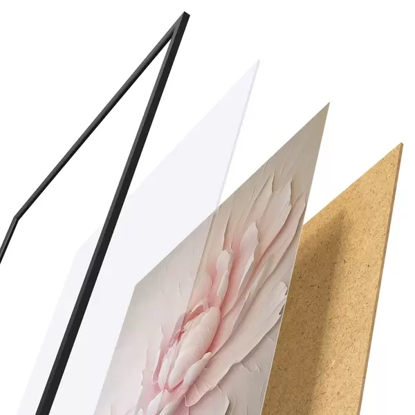 Das Poster besteht aus einem Rahmen, Plexiglas, einem gedruckten Bild und einer Rückwand aus Spanplatten. Dank der Halterungen auf der Rückseite kann das Poster sofort an die Wand gehängt werden.