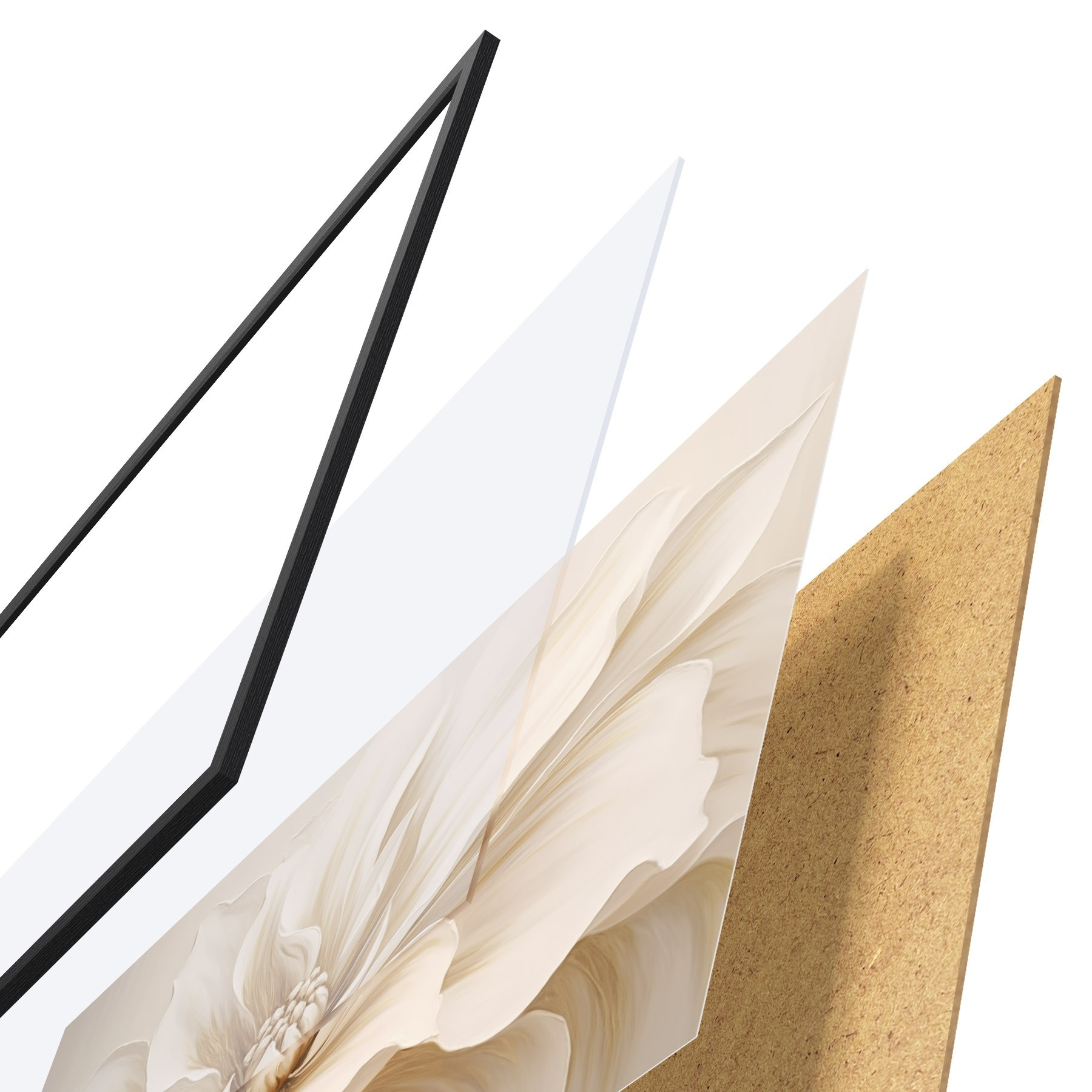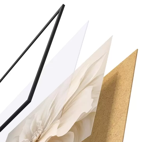Das Poster besteht aus einem Rahmen, Plexiglas, einem gedruckten Bild und einer Rückwand aus Spanplatten. Dank der Halterungen auf der Rückseite kann das Poster sofort an die Wand gehängt werden.