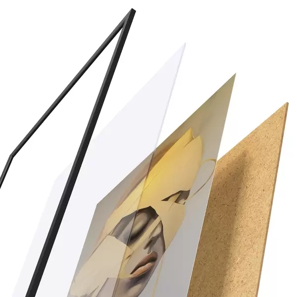 Das Poster besteht aus einem Rahmen, Plexiglas, einem gedruckten Bild und einer Rückwand aus Spanplatten. Dank der Halterungen auf der Rückseite kann das Poster sofort an die Wand gehängt werden.