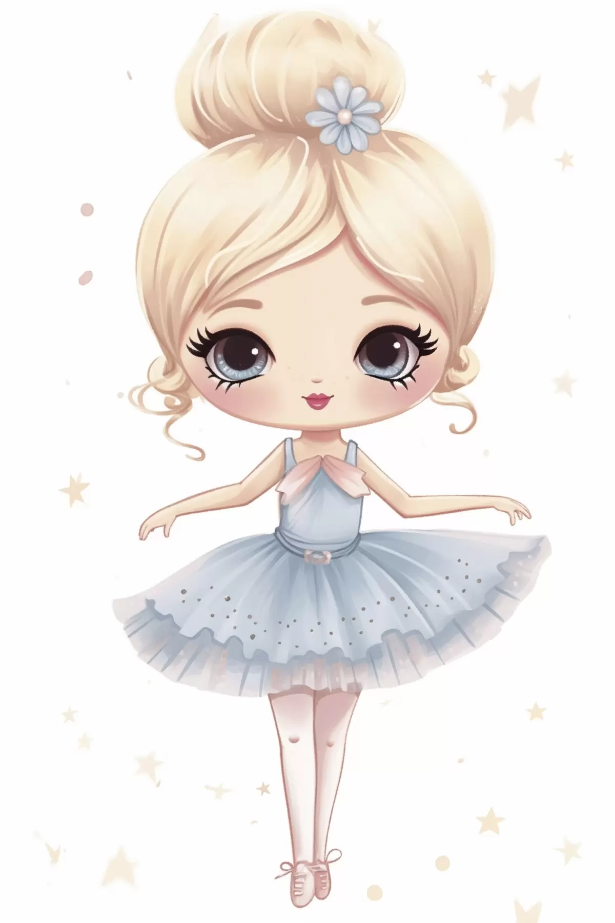 Poster Ballerina-Puppe in einem blauen Kleid mit Schleife Nr f45481