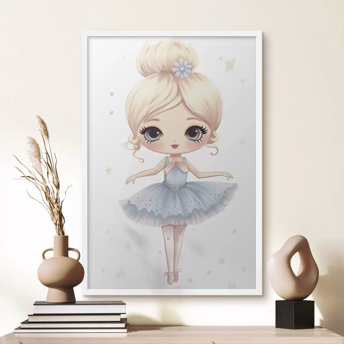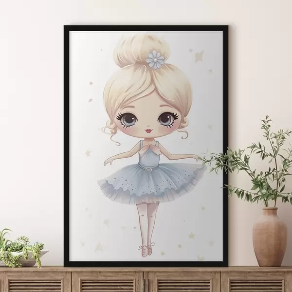 Poster Ballerina-Puppe in einem blauen Kleid mit Schleife f45481