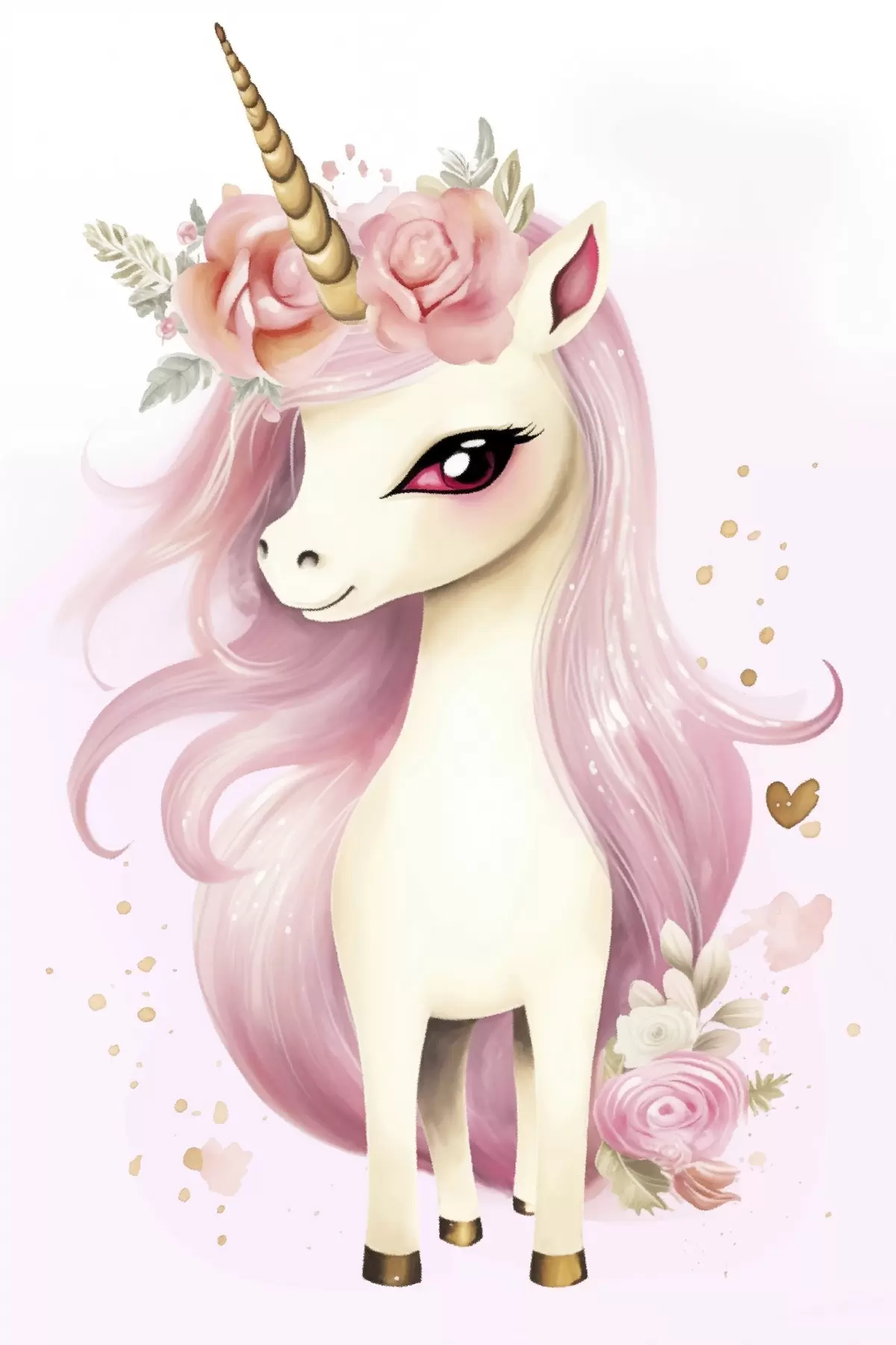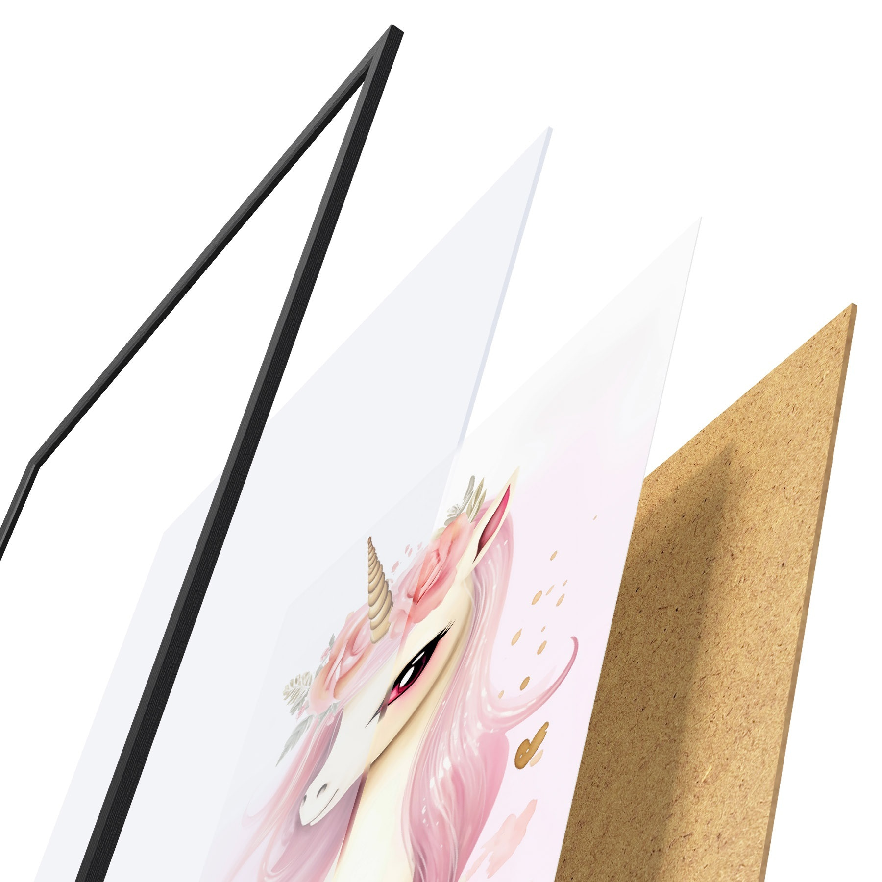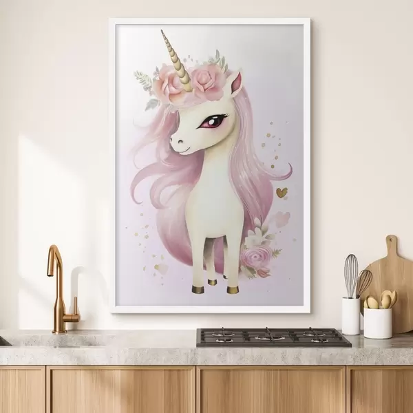 Poster Einhorn mit rosa Mähne und Blumenkranz Nr f45484