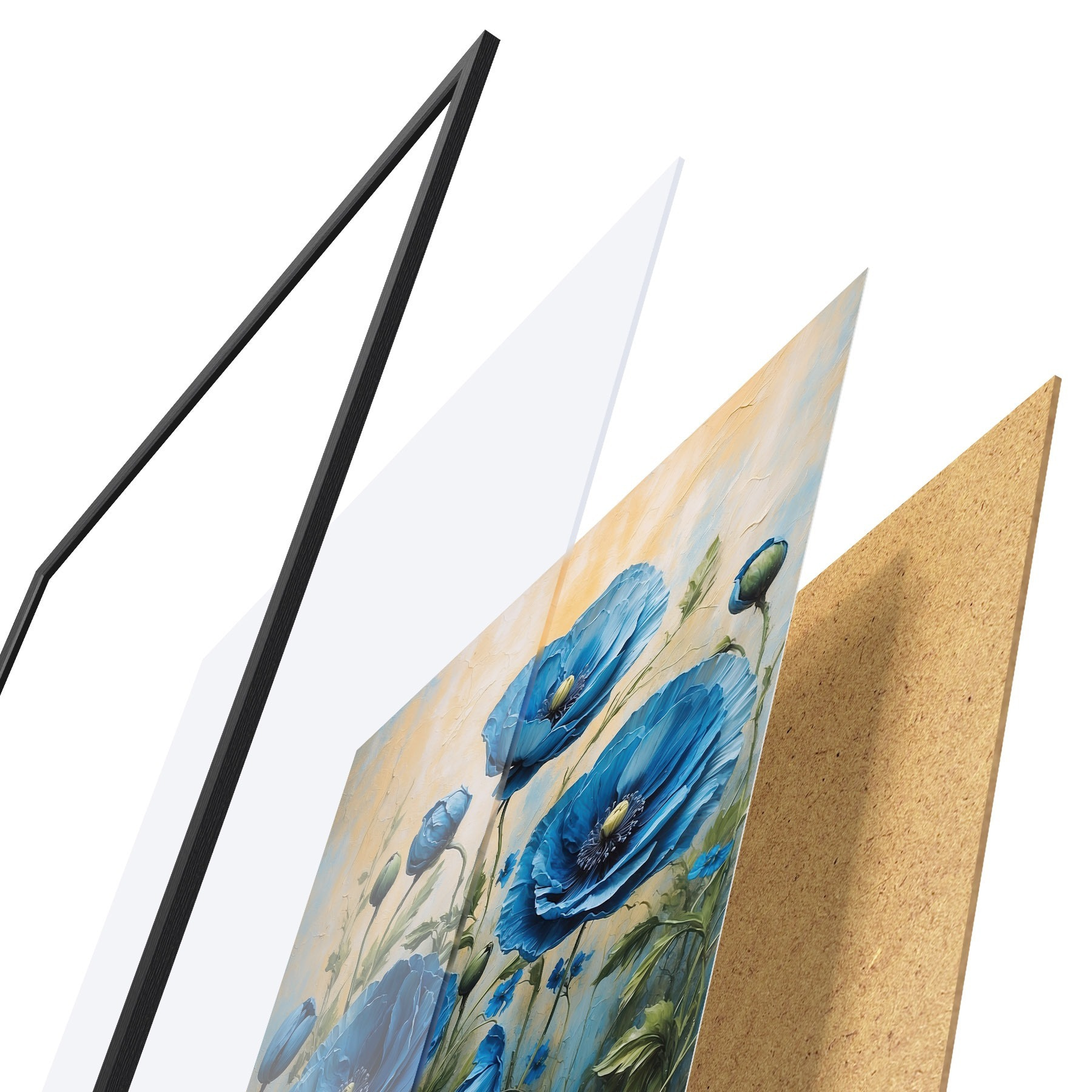 Das Poster besteht aus einem Rahmen, Plexiglas, einem gedruckten Bild und einer Rückwand aus Spanplatten. Dank der Halterungen auf der Rückseite kann das Poster sofort an die Wand gehängt werden.