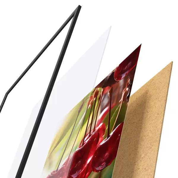 Das Poster besteht aus einem Rahmen, Plexiglas, einem gedruckten Bild und einer Rückwand aus Spanplatten. Dank der Halterungen auf der Rückseite kann das Poster sofort an die Wand gehängt werden.