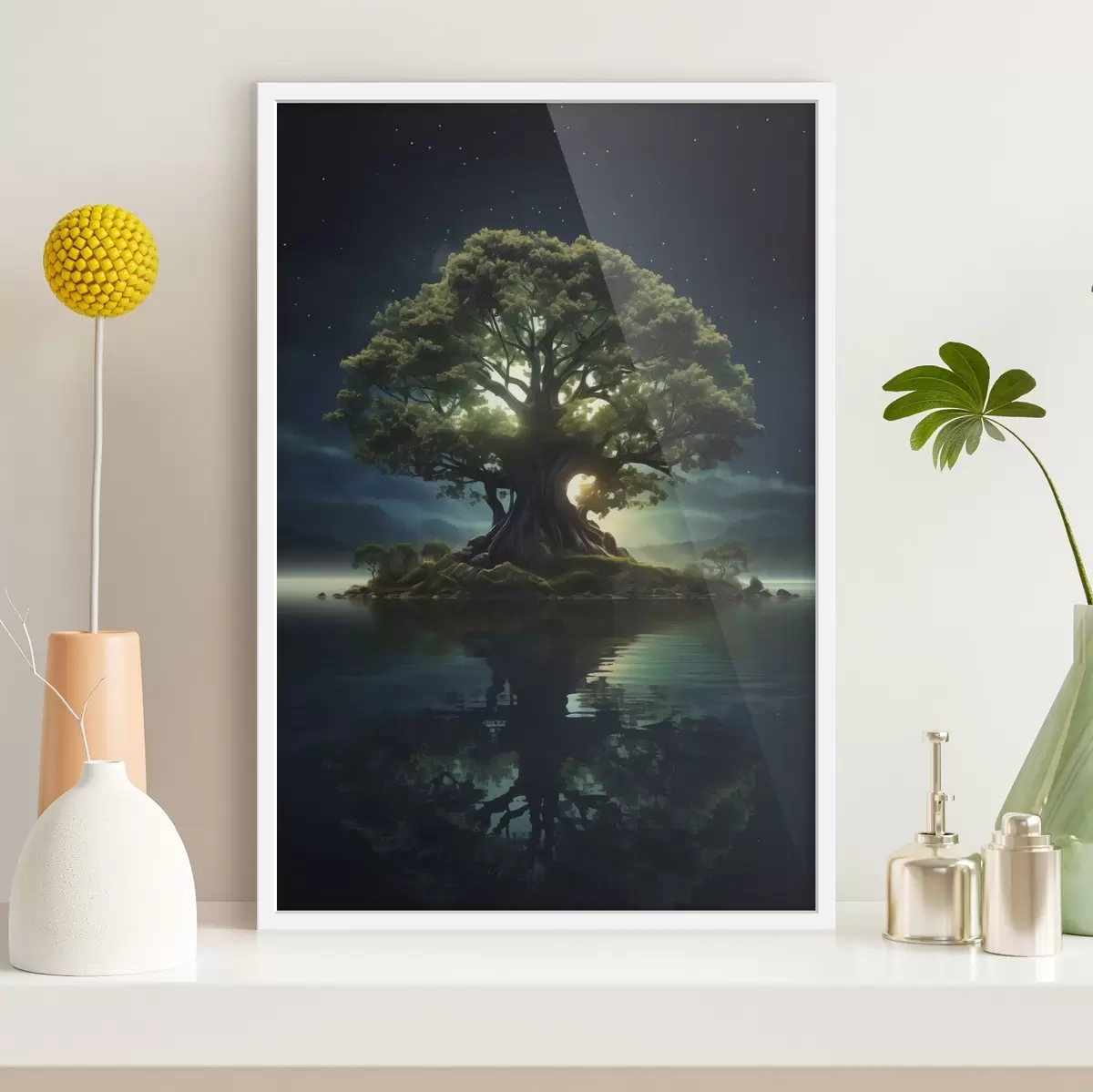 Das Poster besteht aus einem Rahmen, Plexiglas, einem gedruckten Bild und einer Rückwand aus Spanplatten. Dank der Halterungen auf der Rückseite kann das Poster sofort an die Wand gehängt werden.