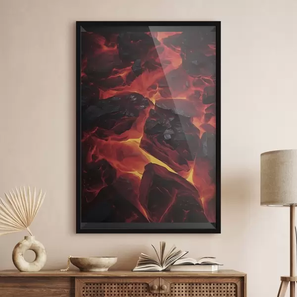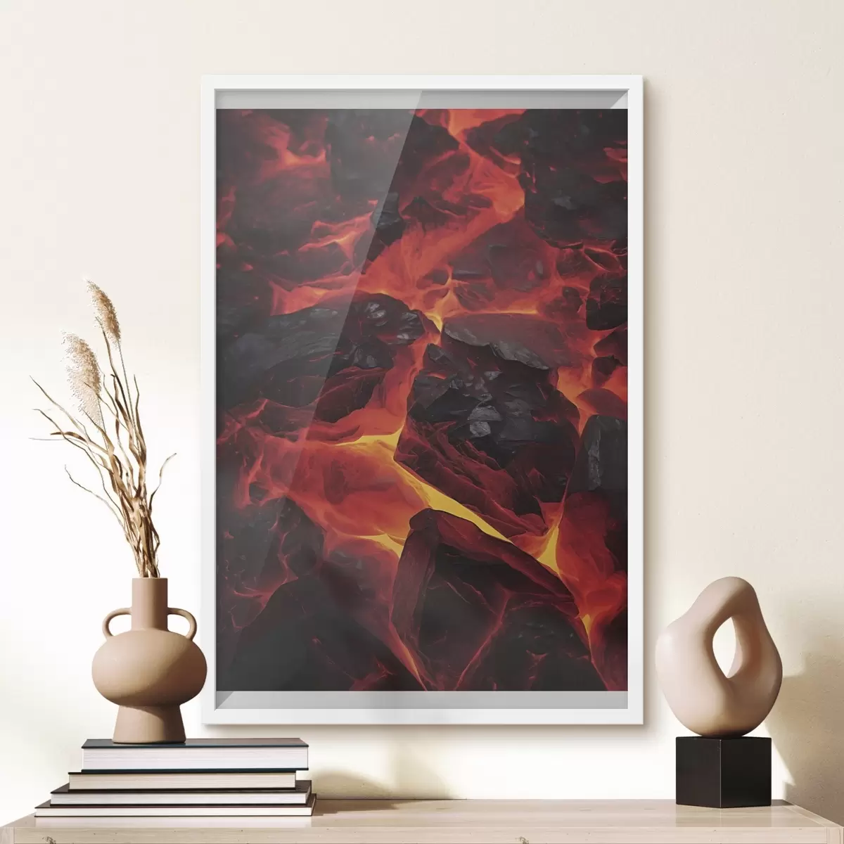 Poster Rotglühende Steine mit Lavaströmen f45515