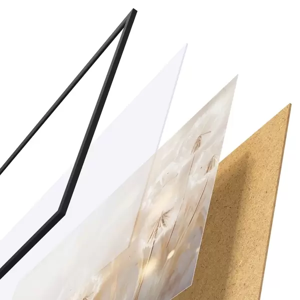 Das Poster besteht aus einem Rahmen, Plexiglas, einem gedruckten Bild und einer Rückwand aus Spanplatten. Dank der Halterungen auf der Rückseite kann das Poster sofort an die Wand gehängt werden.