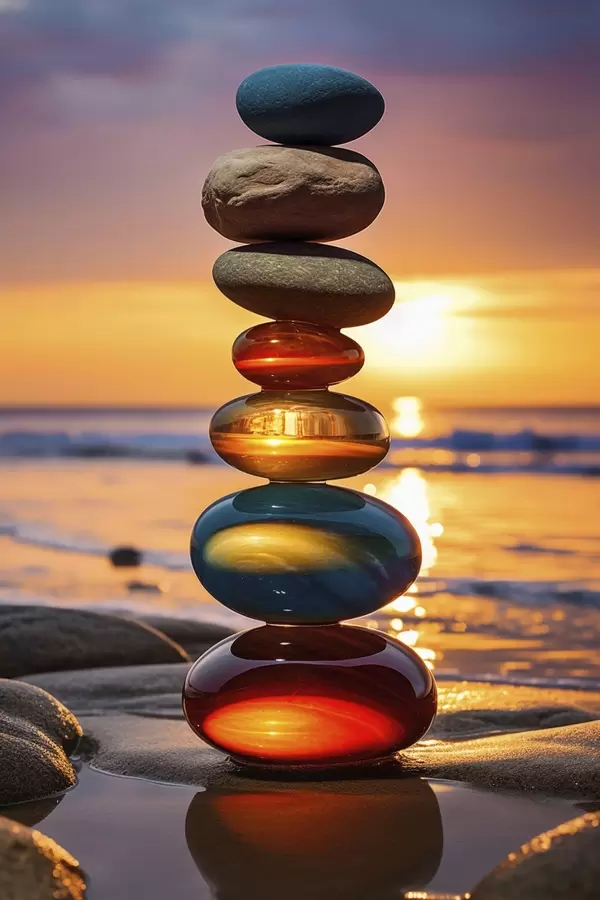 Poster Gestapelte Steine vor der Kulisse des Sonnenuntergangs Nr f45520