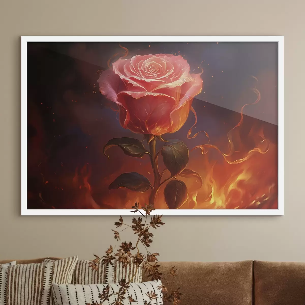 Poster Rote Rose zwischen Feuer und Funken f45523