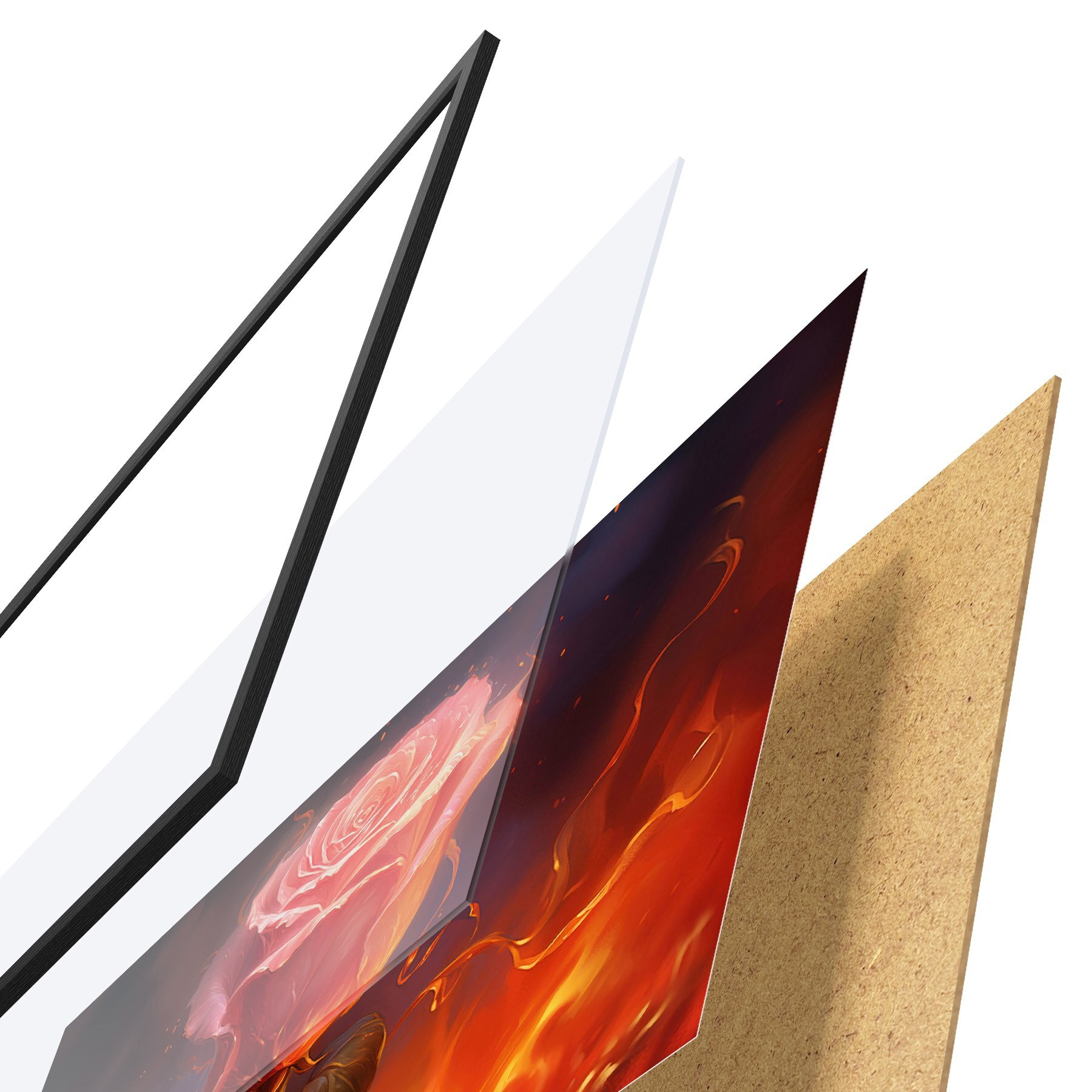 Poster Rote Rose zwischen Feuer und Funken Nr f45523