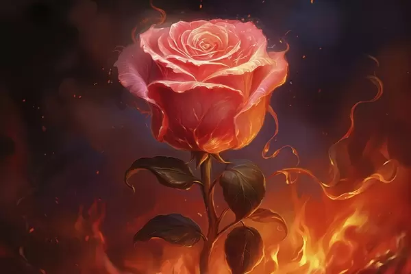 Poster Rote Rose zwischen Feuer und Funken f45523