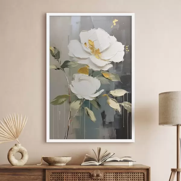 Poster Voluminöse Blumen: dekoratives Motiv in hellen und dunklen Tönen f45531