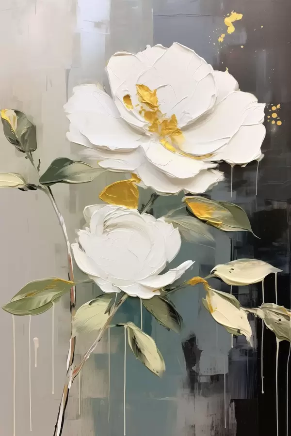 Poster Voluminöse Blumen: dekoratives Motiv in hellen und dunklen Tönen f45531