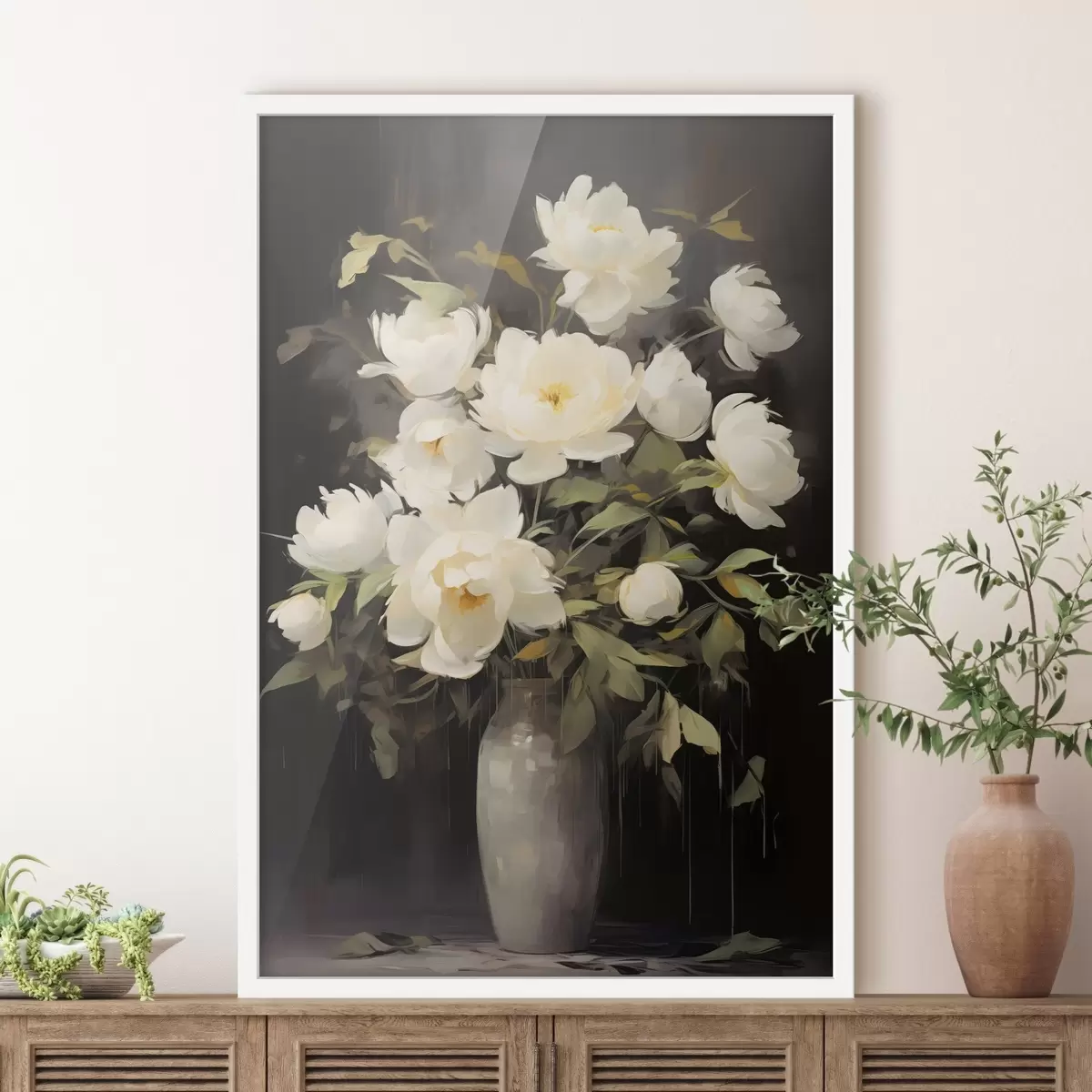 Poster Zarte Pfingstrosen in einer Vase: Blumenkomposition im Stil der Malerei f45532