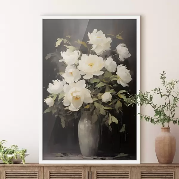 Poster Zarte Pfingstrosen in einer Vase: Blumenkomposition im Stil der Malerei Nr f45532