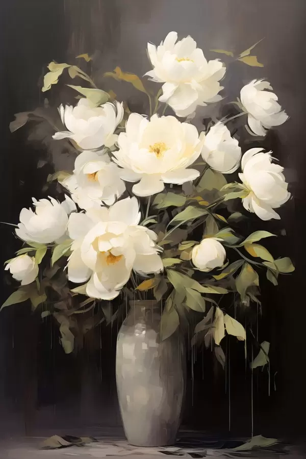 Poster Zarte Pfingstrosen in einer Vase: Blumenkomposition im Stil der Malerei f45532