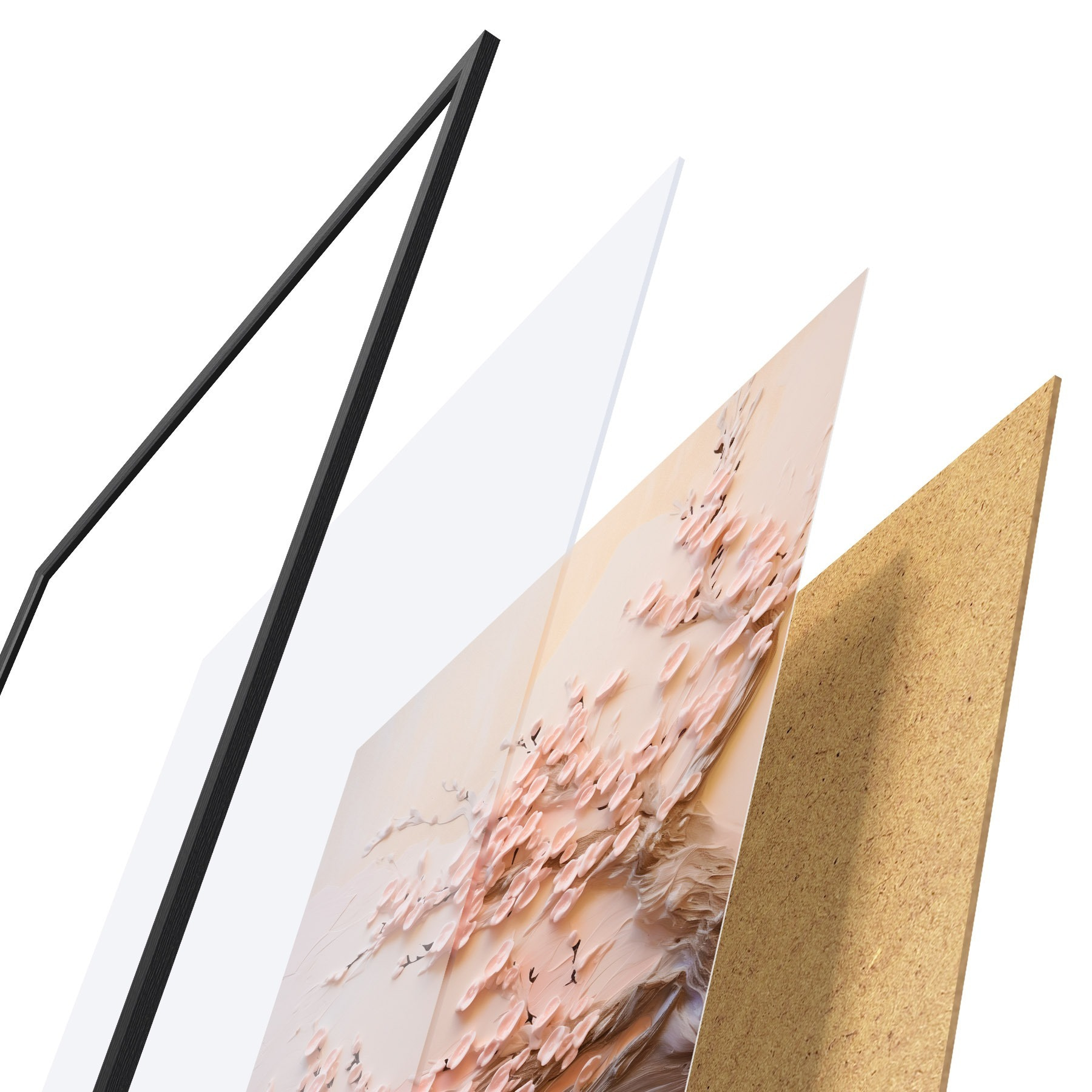 Das Poster besteht aus einem Rahmen, Plexiglas, einem gedruckten Bild und einer Rückwand aus Spanplatten. Dank der Halterungen auf der Rückseite kann das Poster sofort an die Wand gehängt werden.