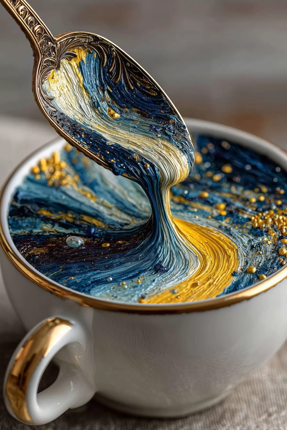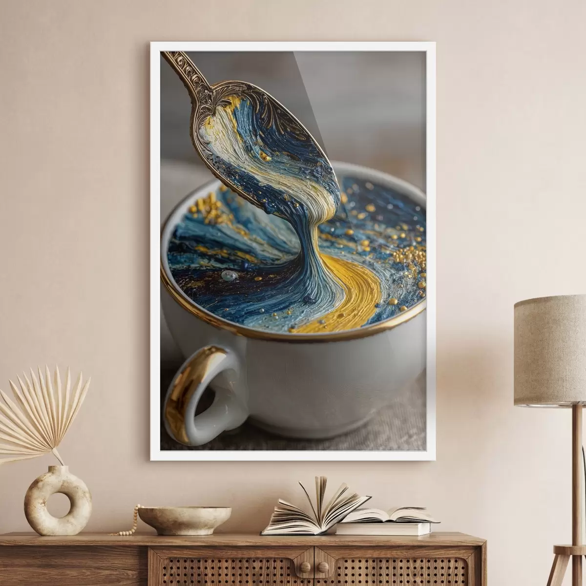 Poster Abstrakte Komposition: gemischte Farben in einer Tasse im Stil von Van Gogh Nr f45545