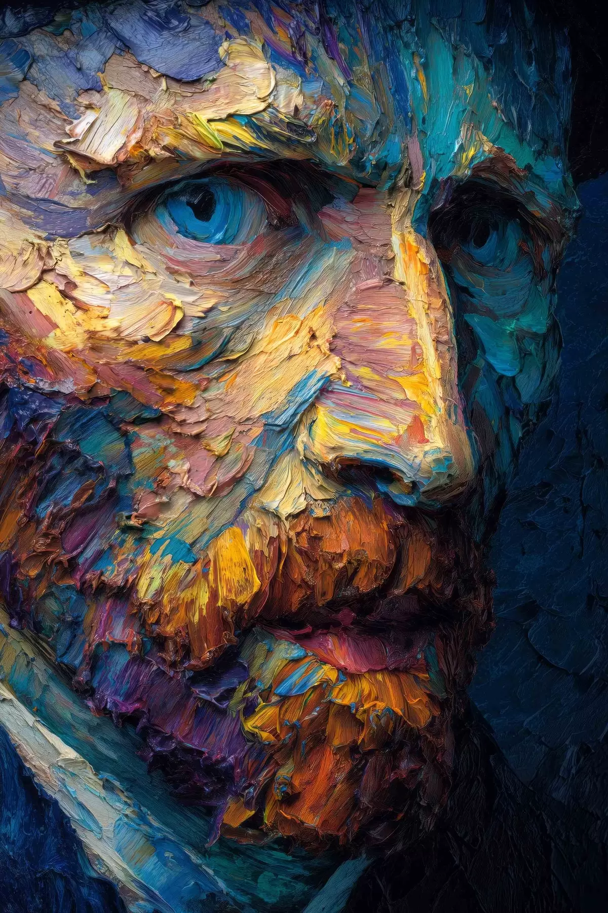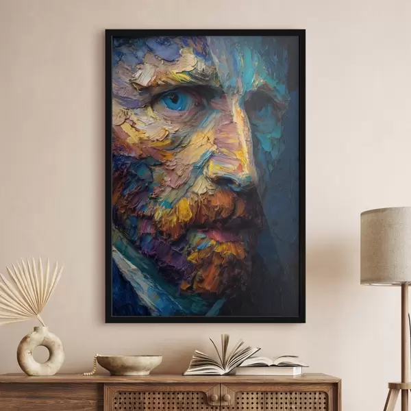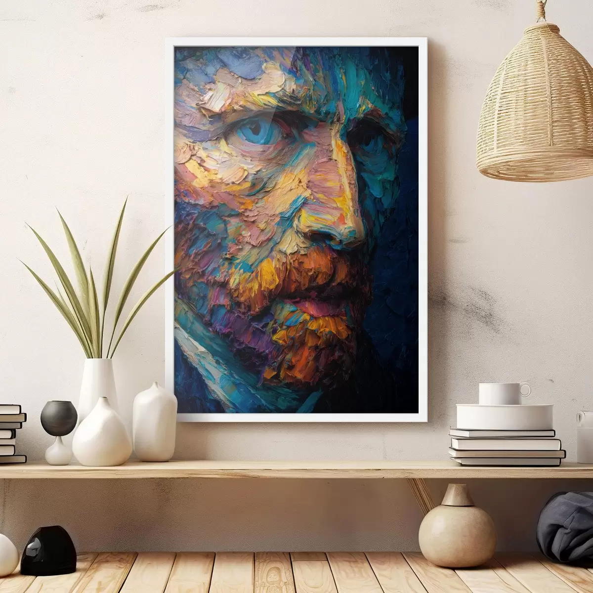 Poster Dekoratives Van-Gogh-Porträt: Reliefmalerei in Blau- und Orangetönen Nr f45546