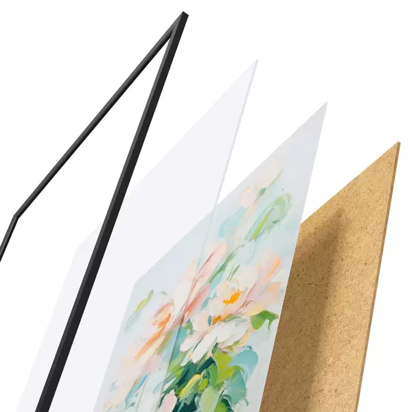 Das Poster besteht aus einem Rahmen, Plexiglas, einem gedruckten Bild und einer Rückwand aus Spanplatten. Dank der Halterungen auf der Rückseite kann das Poster sofort an die Wand gehängt werden.