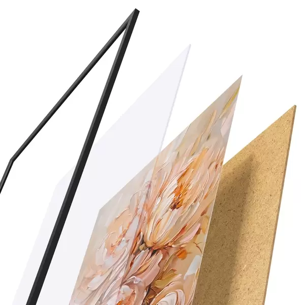 Das Poster besteht aus einem Rahmen, Plexiglas, einem gedruckten Bild und einer Rückwand aus Spanplatten. Dank der Halterungen auf der Rückseite kann das Poster sofort an die Wand gehängt werden.