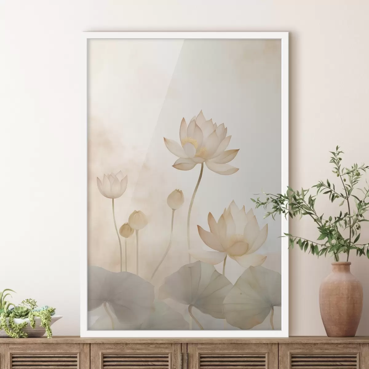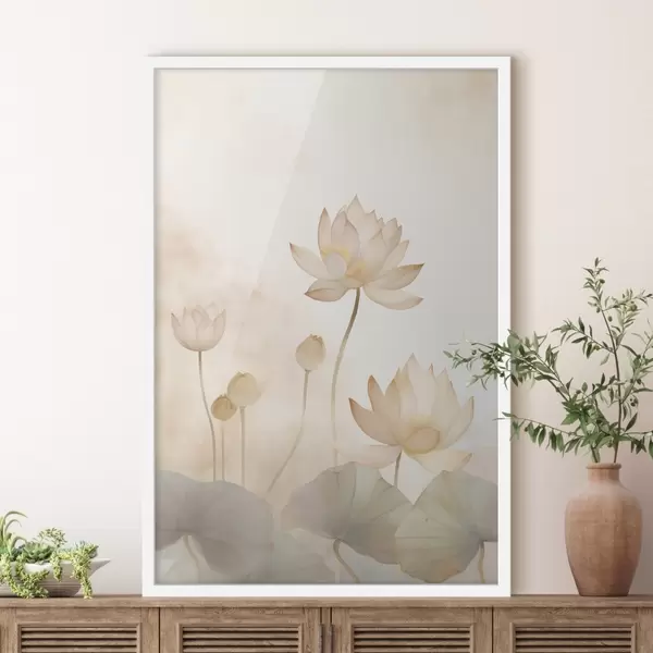 Sie können das Bild an Schrauben aufhängen. Dazu legen wir unseren Bildern Halterungen bei, mit denen Sie das Bild bequem aufhängen können.